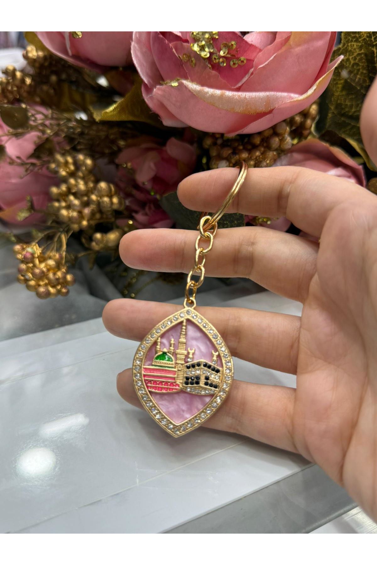 Sedefli Elips Desen Anahtarlık (Pembe)