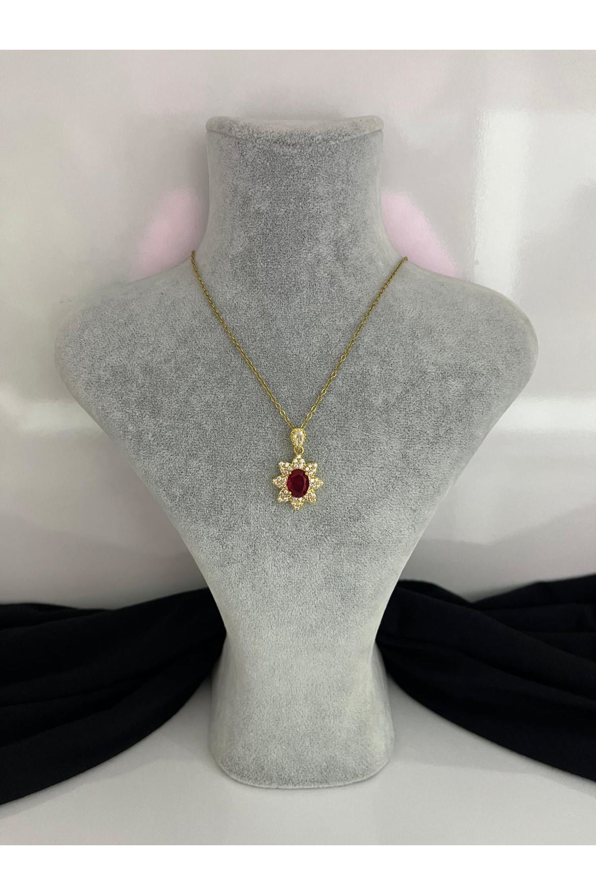 Taşlı Oval Model Çelik Kolye